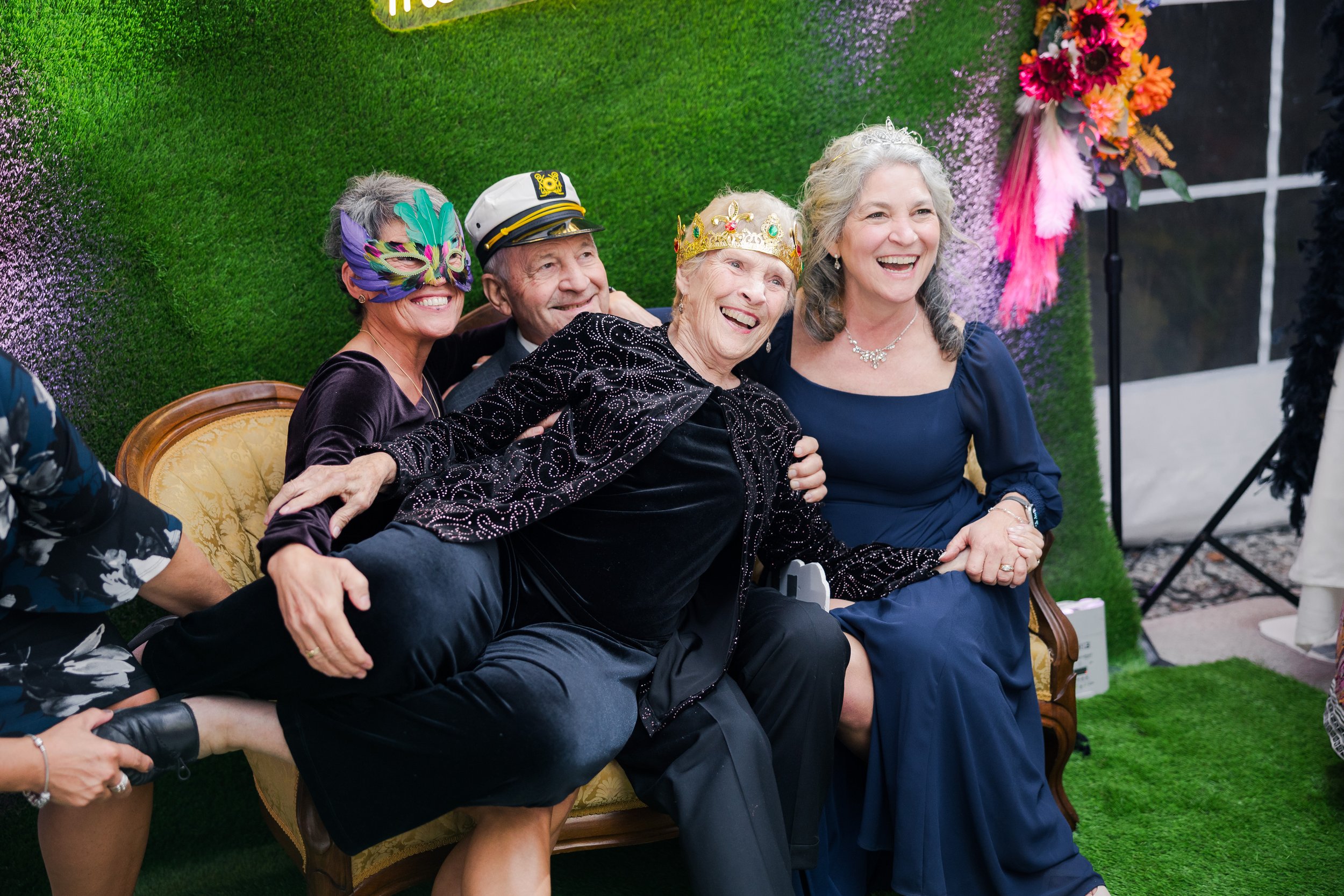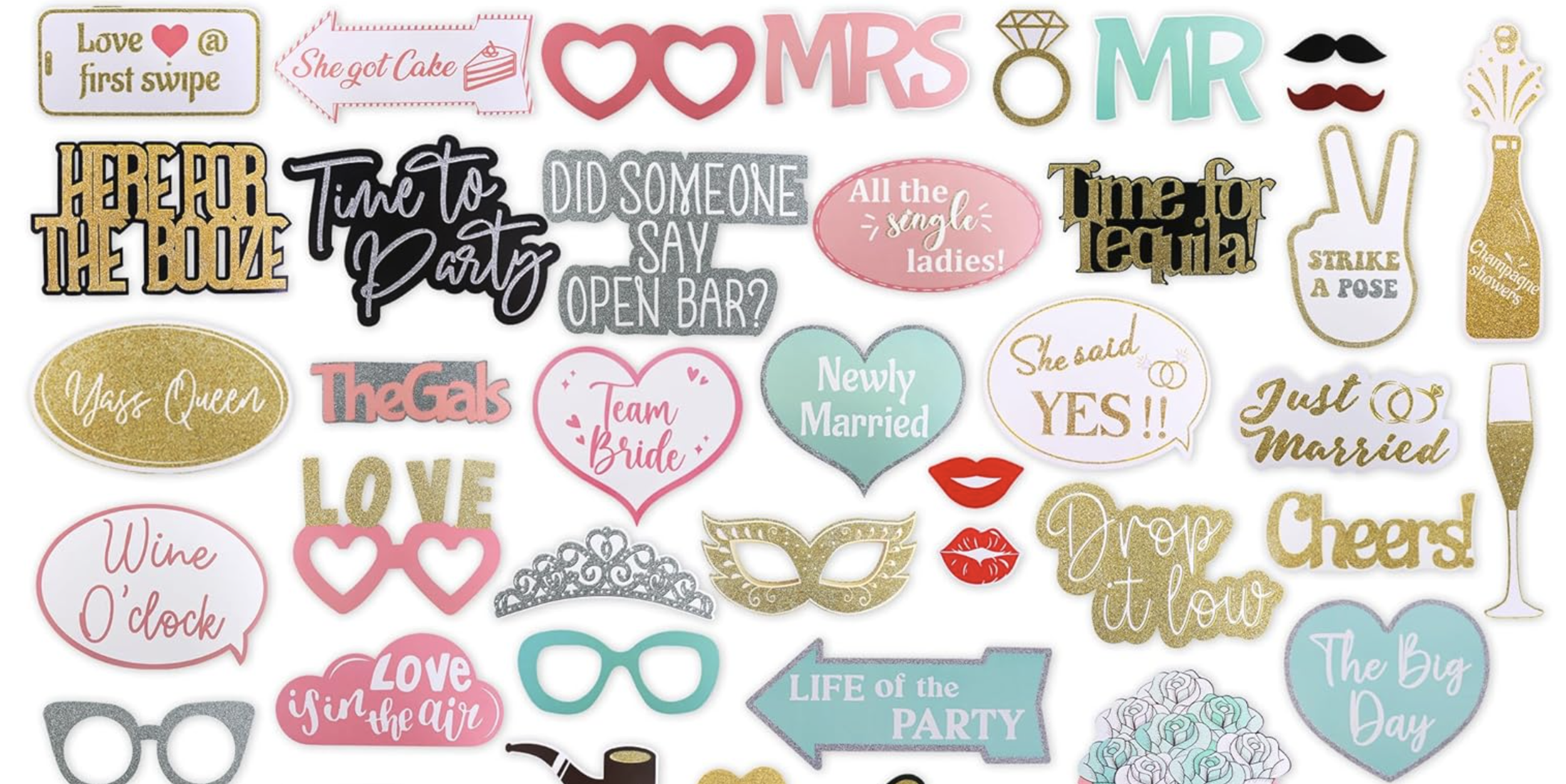 The selfie station can be rented on it’s own or you can add one of three shimmery backdrops that best suits your occasion. Digital props are included in the software but physical props can be added.